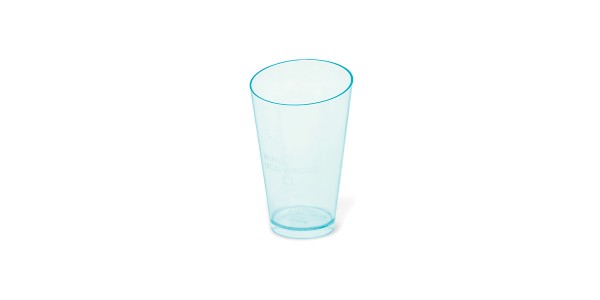 Hranatý pohár má zkosené strany a díky výrobnímu materiálu (PS), který připomíná plexisklo a má zelenkavý nádech se v něm zajímavě odráží světlo a vytváří se duhové odlesky. Pohár vydrží teploty max. 40°C. Neservírujte v něm horké pokrmy. Rozměry: 7,2 x 7,2 x 7,9 cm.