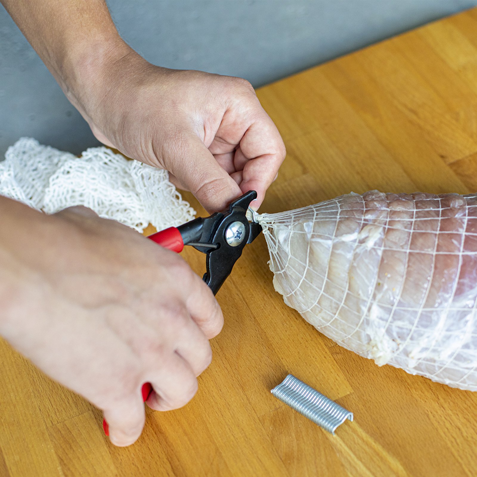 Od nynějška bude příprava domácích uzenin ve střevech, střevech a síťkách na klobásy ještě jednodušší! Kleště na klobásy, vyrobené z vysoce kvalitní slitiny nerezové oceli, je ideální pro utahování specializovaných klipů při domácí výrobě uzenin. Střeva a střívka díky klipům pevně ochrání připravované maso a síťky na klobásy se pod tlakem ani velké váhy nerozvážou. Krimpovač perfektně padne do ruky, neklouže a jeho použití je extrémně snadné. Kleště se pohybují velmi snadno, krimpovač má na koncích svorek speciální vybrání, do kterých jsou spony umístěny, po jejich utažení se zařízení automaticky otevře, aby se připravila další svorka. Speciální profilovaná hlava zajišťuje rychlou a dokonalou montáž svorek. Sada s krimpovačem obsahuje také 60 klipů, které vám umožní vyrábět domácí produkty hned po vybalení z krabice!