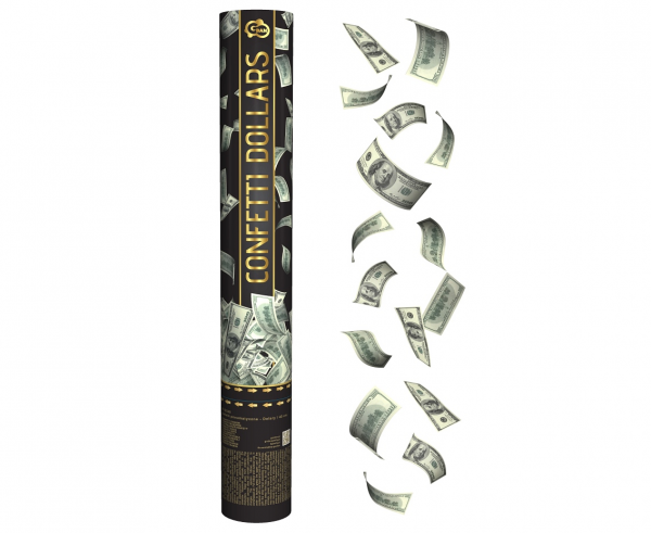 Ideální pro svatby, recepce, plesy, Silvestr, narozeniny, svátky, kinder-party atd. Balení 1 ks 40 cm dlouhé trubice, výška střely 7-8 m. Z trubice vyletují papírové jednodolarové bankovky. Konfety jsou oblíbeným prvkem mnoha menších i větších oslav. Lze použít v interiéru i exteriéru.