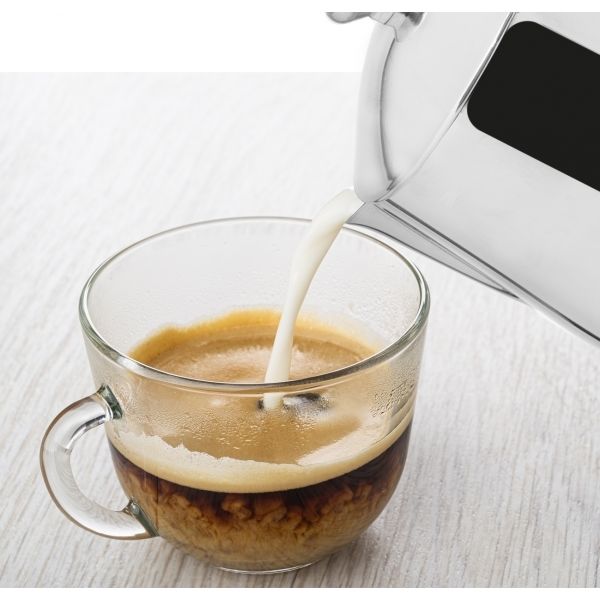Až už domů, na chalupu nebo s sebou na cesty. Uvařte si vodu na kávu nebo čaj pomocí této krásné nerezové konvice o objemu 2,3 l. Hliníkový úchyt slouží k přenášení nádoby. Víčko snadno odklopíte zatlačením za výstupek u držadla.