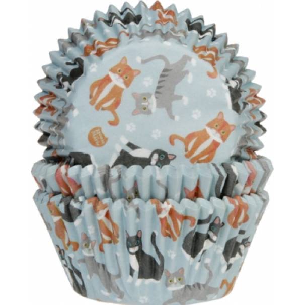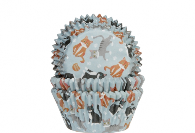 Košíčky šedé barvy s motivy tří různých kočiček. V sadě je padesát košíčků z pergamenového papíru. Rozměry jednoho košíčku jsou 50 x 33 mm.