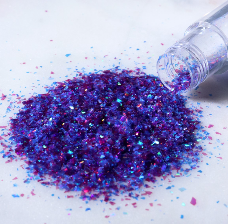100% jedlé, veganské duhové třpytivé vločky vyrobené z rostlinných barviv. S efektem drahokamu. Používejte na suché povrchy, aby se zabránilo rozpuštění. Třpytivé vločky jsou ideální pro dodání oslnivého nádechu a zajistí, že vaše dezerty budou zářit jasně."