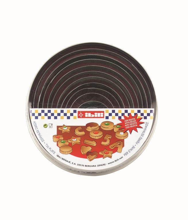 Sada nerezových vykrajovátek v praktickém boxu. Jednotlivá kolečka do sebe zapadají. Jsou vyrobena z kvalitního nerezu. Průměry koleček jsou 2; 3; 4; 4,5; 5; 6; 6,5; 7; 8; 8,5; 9 cm. Výška koleček je 2 cm.