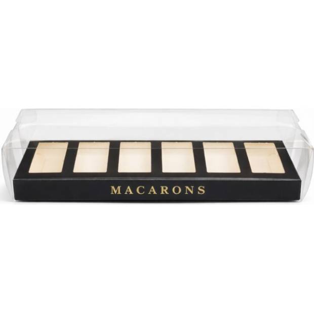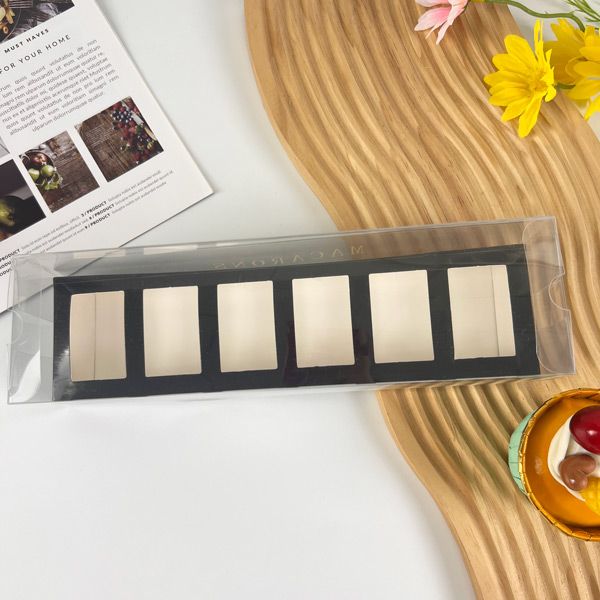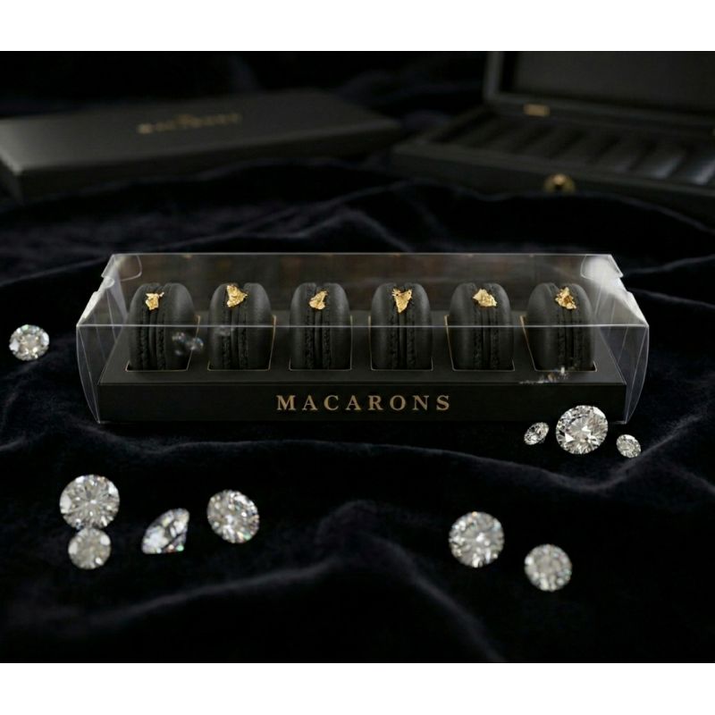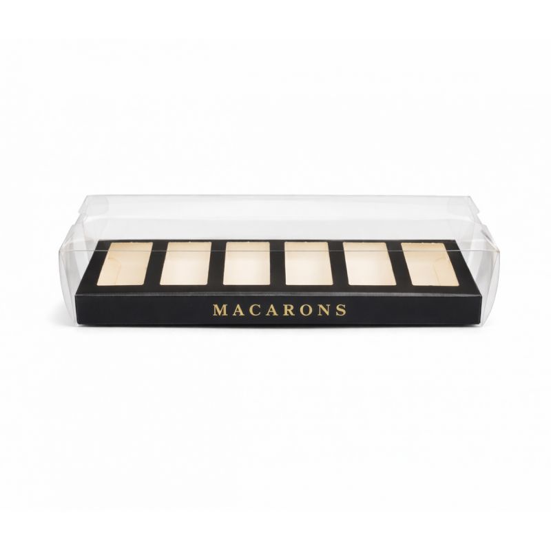 Elegantní průhledný obal s černým podkladem promění vaše makronky v luxusní dárek i profesionální prezentaci.