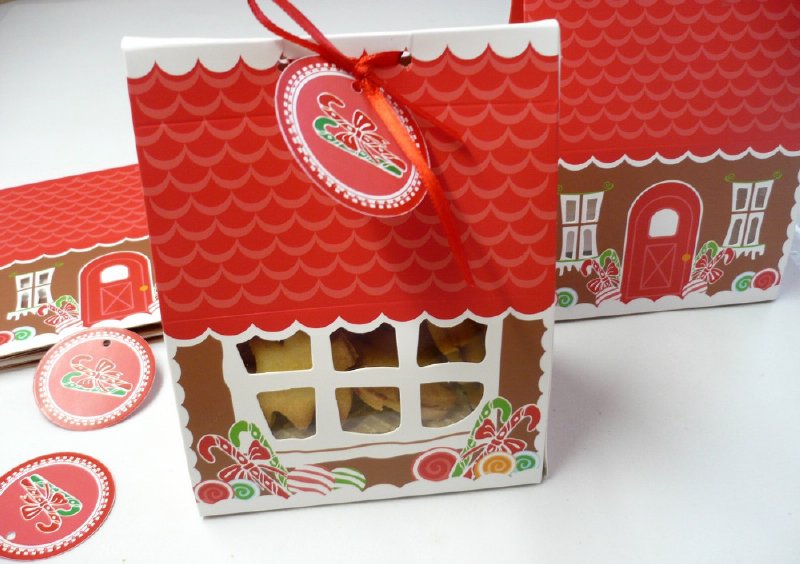 Krabička na cukroví v originálním provedení perníkové chaloupky je perfektní na drobné cukroví, kterým potěšíte své blízké. Krabička je červeno hnědá a je zdobená vánočními motivy. Je převázaná mašličkou se jmenovkou.