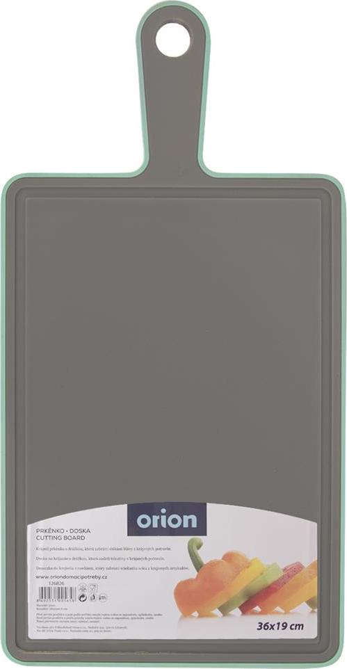 Krájecí prkénko s drážkou, která zabrání stékání šťávy z krájených potravin. Materiál: plast PP, TPE. Lze mýt v myčce na nádobí (do 95 °C). Rozměry: 36x19x0,8 cm.