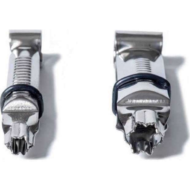 Pro snadné a rychlé nazdobení potahovací hmoty jsou perfektní tyto krimpovací kleště na dorty. Seštípnutím kleští otisknete na hmotu hvězdičku. Aby byly tvary pravidelné a stejně velké, jsou kleště opatřeny zajišťovací gumičkou. Šířka hvězdiček je 12 a 17 mm. Kleště jsou vyrobené z nerezu. Balení obsahuje dvoje kleště.