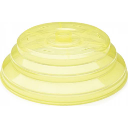 Skládací kryt ze silikonu chrání vaši mikrovlnku před znečištěním a jídlo před vysycháním. Je vyroben z odolného a pružného silikonu, který vydrží velmi vysoké teploty a navíc nenatahuje pachy. Praktický kryt můžete využít také k zaklopení potravin v lednici, nebo ho složit a použít jako poklici na velký hrnec. Průměr krytu: 25 cm.