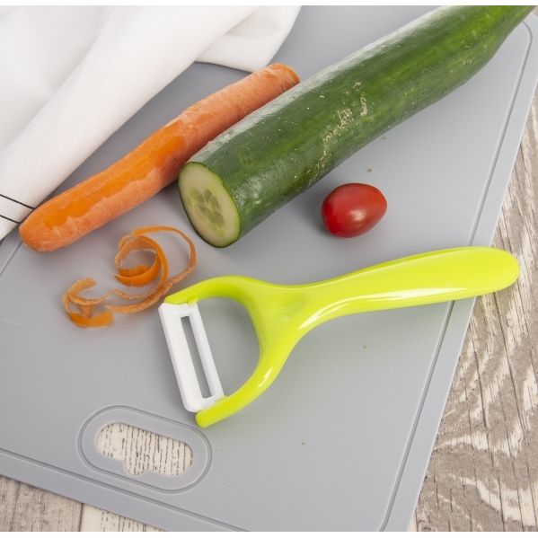Škrabka na ovoce i zeleninu s keramickým ostřím a ergonomickou rukojetí pro pohodlné držení. Neničí vitamíny, vydrží dlouho ostrá, je lehká. Vhodná pro praváky i leváky. Lze ji mýt v myčce na nádobí, ale nedoporučujeme, aby nedošlo k porušení keramického ostří. Materiál: plast, netříštivý oxid zirkonia. Assort barev. Rozměry: délka 15 cm, šířka 6 cm.