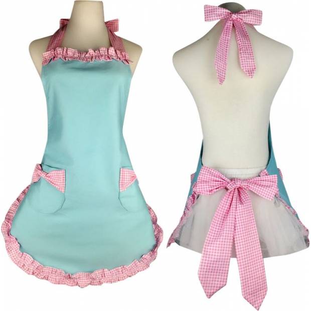 Kuchyňská zástěra může být hezká a stylová a také praktická jako tato zástěra s mašlí a kapsičkami na bocích. Věříme, že funkční a praktické předměty mohou být také módní a krásné. Střih zástěry doplňuje pásek a díky propracovanému střihu je velmi praktická.