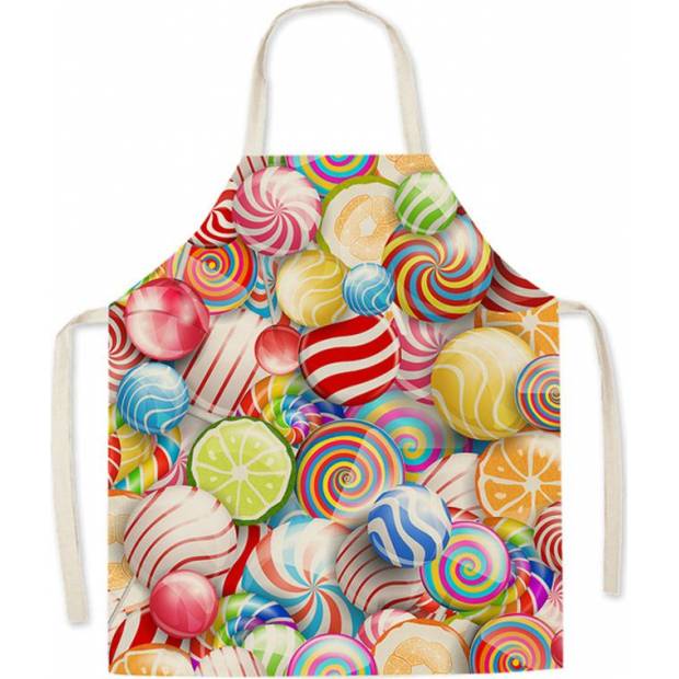 Kuchyňská zástěra může být hezká a stylová a také vtipná jako tato s motivem sladkostí. Věříme, že funkční a praktické předměty mohou být také módní a krásné. Střih zástěry doplňuje pásek a díky propracovanému střihu je velmi praktická.