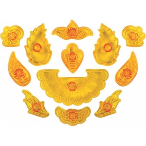 Vytvářejte snadno krásné květy s touto sadou 12 vykrajovátek. Jednoduše zasuňte nože do válečkové podložky JEM, protlačte vykrajovátko základnou okvětních lístků JEM, vysuňte pastu nahoru a válečkem přes zadní část nože, abyste dosáhli čistých a čistých výřezů. Sada obsahuje 10 různých vykrajovátek, které vytvářejí efektivní květiny a perfektně se hodí do jakéhokoli trsu s cukrovými květinami.