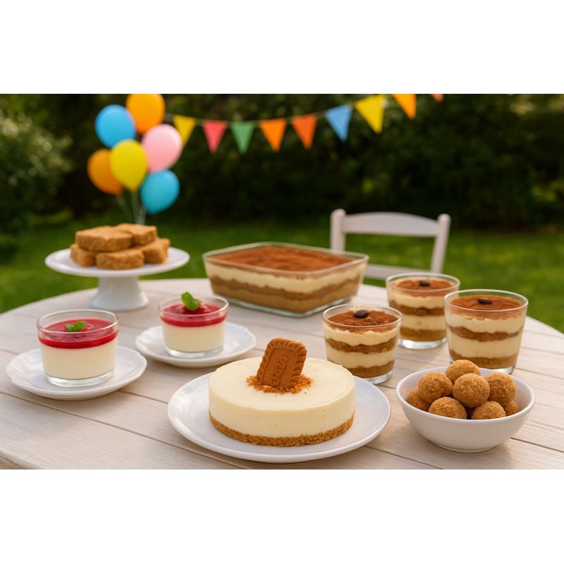 • Ozdobte okraj celými Lotus sušenkami, doplňte lyofilizovanými malinami a čerstvým ovocem.