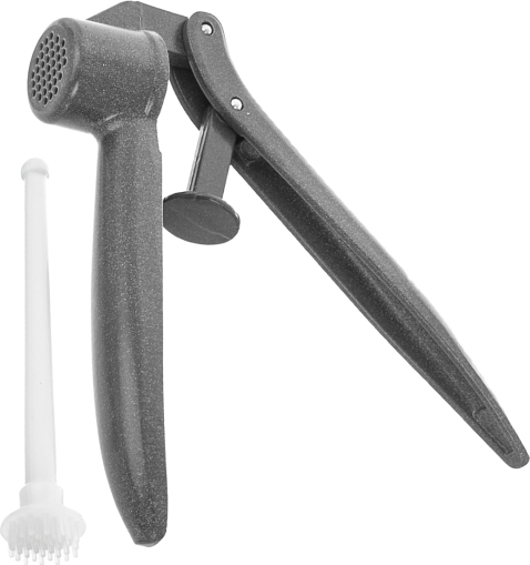 Lis na česnek nahradí pracné tření česneku nožem. Stačí vložit oloupaný stroužek česneku a tlakem, stiskem rukojetí, dojde k prolisování stroužku skrz otvory. Do polévky, pomazánky i bramboráků. Součástí je i praktický čistič otvorů.