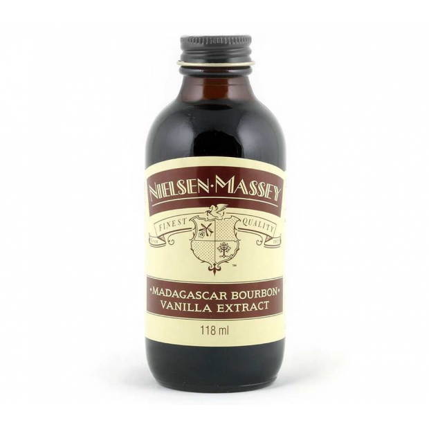 Vanilkový extrakt Madagascar Bourbon od značky Nielsen-Massey je krémový, sladký a jemný na chuť. Tento extrakt je již dlouho volbou profesionálních pekařů a cukrářů pro přípravu vynikajících dortů a dezertů (neporovnatelný s běžně používaným vanilkovým cukrem). Rodinná firma Nielsen-Massey vyrábí tento vysoce kvalitní extrakt již více než 100 let za použití tradiční metody studené extrakce z pečlivě vybraných vanilkových lusků. Vanilkový extrakt je uchováván v alkoholu, což zaručuje jeho dlouhou trvanlivost a intenzivní chuť. Madagascar Bourbon Vanille nemá nic společného s bourbon whiskey, svůj název získala podle souostroví Bourbon Islands v Indickém oceánu.