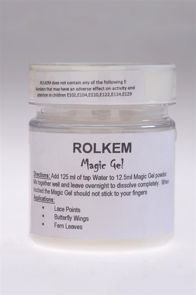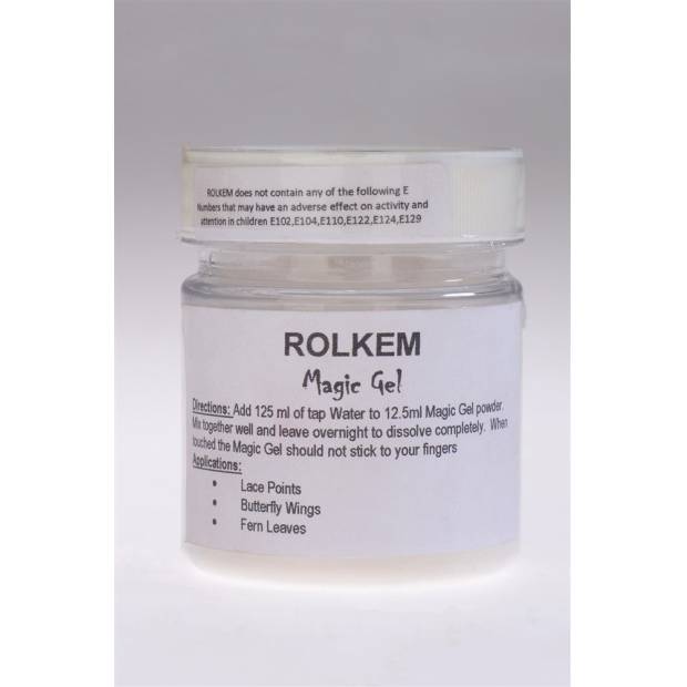 Za pomocí prášku a vody, vyrobíte Magický gel. Rolkem je prášek, který se ředí vodou, v poměru 125ml vody do 12,5ml prášku. Směs se nechá přes noc uležet - tak vznikne Magic gel. Poté, se ze vniklé směsi lehce vytváří jemná dekorace, například motýlí křídla, krajka, listy,... Vzniklý jemný magický gel se na dotek nelepí.