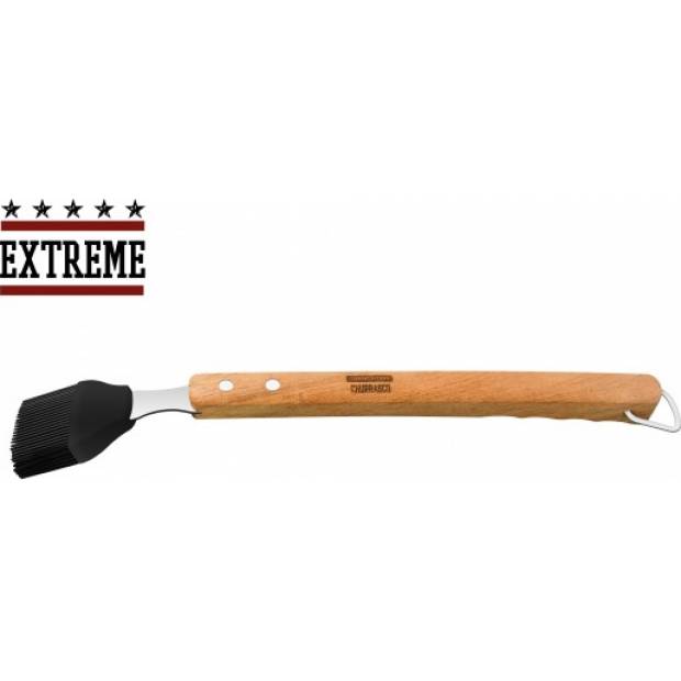 Silikonová mašlovačka EXTREME je ideálním doplňkem grilu pro všechny kuchaře. Vyrobena z nerezové oceli AISI 430 (odpovídá DIN 1.4016) s nýtovanou rukojetí X-TRA LANGEN z tvrdého dřeva. Kartáč má na konci držadla kovový kroužek, pomocí kterého můžete snadno zavěsit silikonový kartáč k dalšímu náčiní. Lze mýt v myčce nádobí. Délka 42 cm.