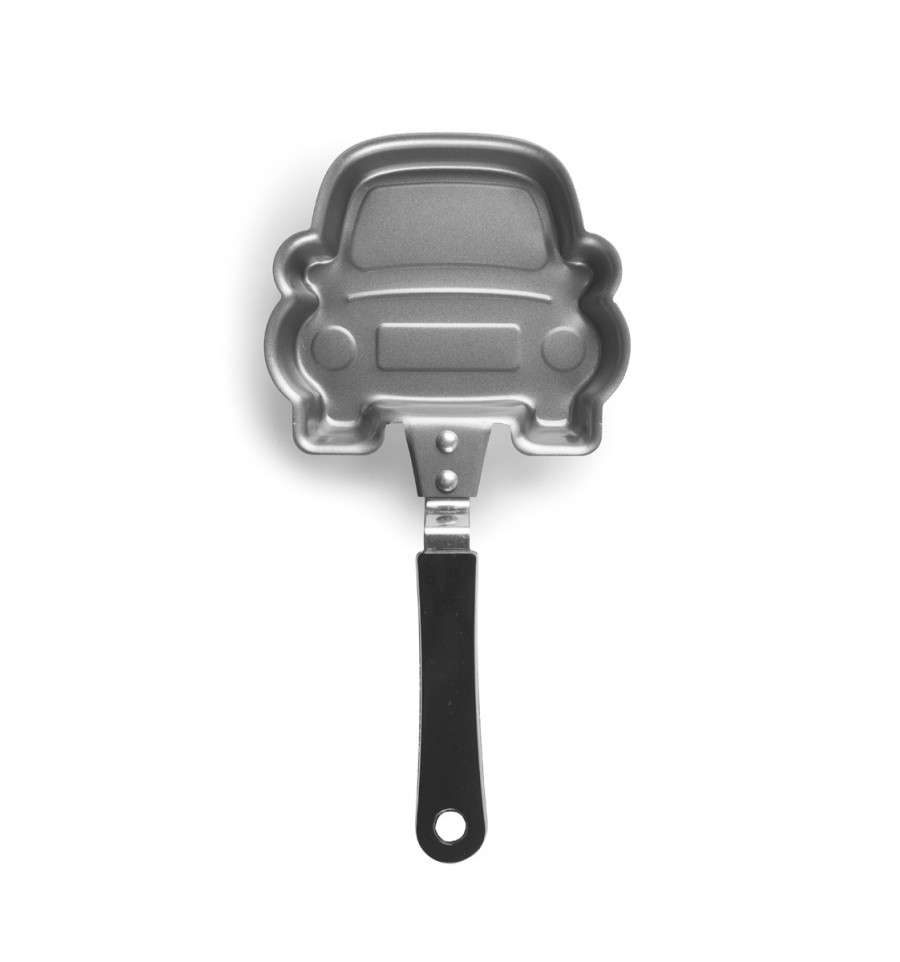 Mini pánvička na lívance má tvar auta. Rozměry 15 x 11 cm.