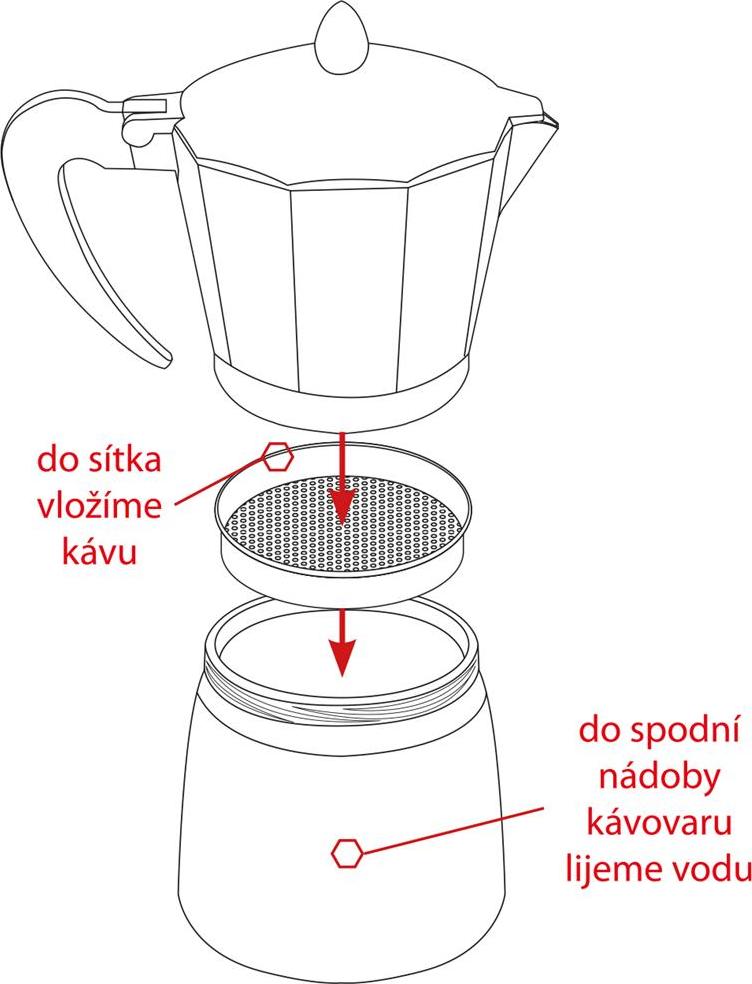 Tradiční kávovar pro rychlou a levnou přípravu mimořádně chutného espressa je vhodný pro použití na plynových, elektrických a sklokeramických deskách. Jednoduše naplníte spodní část kávovaru teplou vodou a vložíte zásobník s kávou, našroubujete vrchní část kávovaru a můžete začít vařit. Tlakem vznikajícím při varu se espresso dostane do horní nádobky a vy můžete nalévat. Materiál: zdravotně nezávadný hliník, držadlo – plast PP, silikonové těsnění – součástí balení 1x náhradní těsnění. Kávovar je opatřen bezpečnostní pojistkou. Rozměry: objem 0,3 l, výška nádoby 18 cm, pr. 9,5 cm. Náhradní těsnění v naší nabídce 180531.