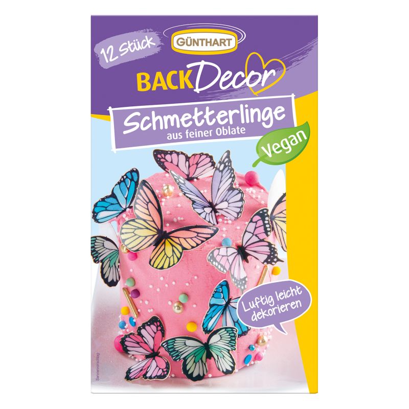 Motýlci z jedlého papíru Günthart jsou krásná a lehká dekorace, se kterou snadno proměníte každý dort, cupcake nebo zákusek v originální slavnostní výtvor. Díky realistickému tvaru a sytým barvám působí na dezertech velmi atraktivně a navodí romantickou i hravou atmosféru. Praktické balení o hmotnosti 5 g (℮) je ideální pro zdobení slavnostních příležitostí, jako jsou svatby, narozeniny či rodinné oslavy.