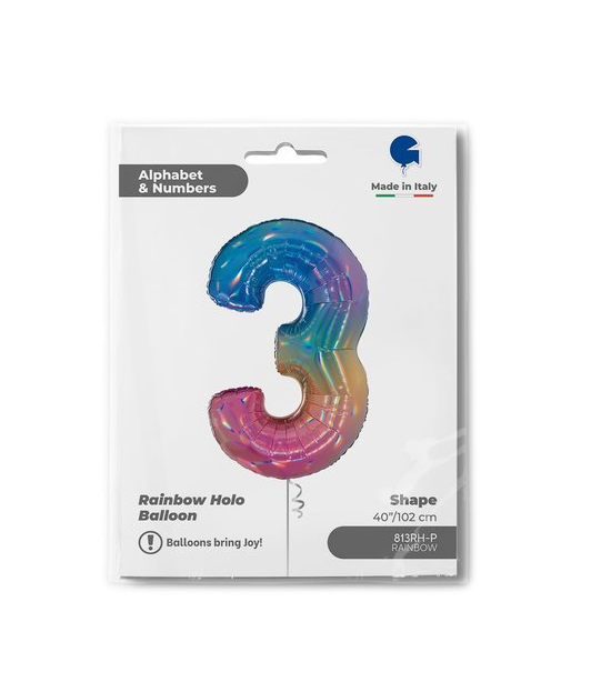 Nafukovací balónek číslo 3 duhový 102 cm - Grabo