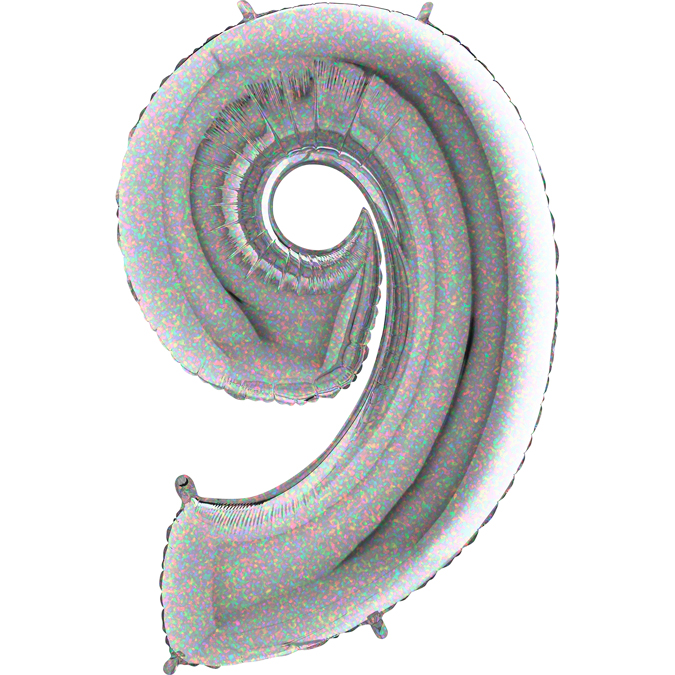 Nafukovací balónek číslo 9 holografický 102cm extra velký - Grabo