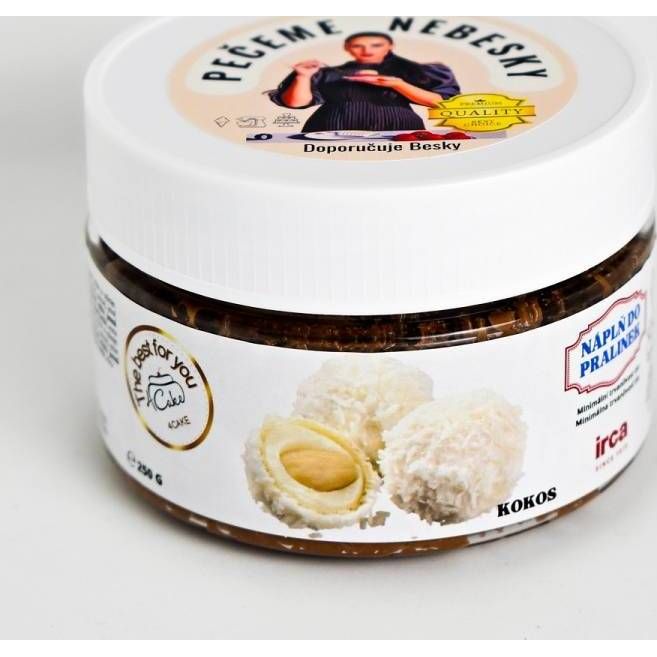 Jemná pasta z bílé čokolády s kousky kokosu a s křupavými máslovými sušenkami. Je připravená k okamžitému použití. Vhodná do pralinek, zmrzlin, do krémů nebo k potírání korpusů.