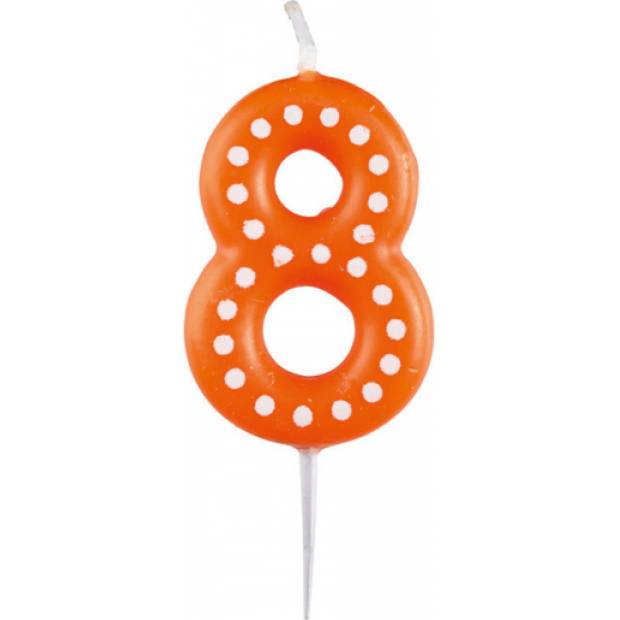 Narozeninová svíčka číslo 8 s tečkami. Výška 7,6 cm.