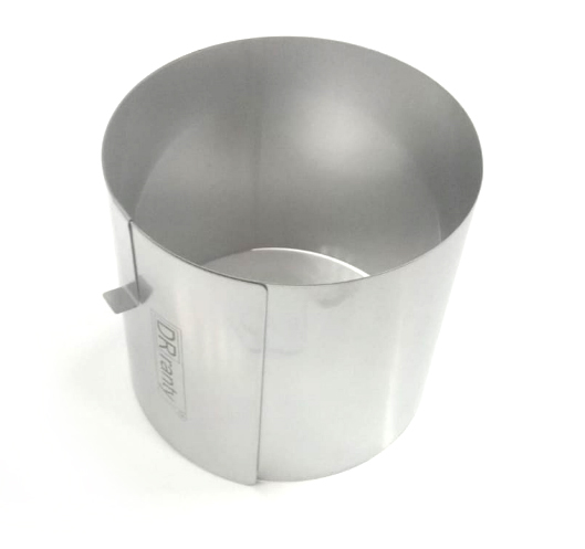 Kruhová nastavitelná forma na dort. Nastavitelný okraj formy o průměru 15 - 21 cm. Forma je 14 cm vysoká. Vyrobeno z odolné a deformační nerezové oceli s certifikátem. Sada obsahuje dvě montážní spony. Cukrářská kruhová forma je alternativou k tradičním plechům na pečení. Naproti tomu je mnohem funkčnější, protože ji lze libovolně upravovat. Použití ráfku mimo jiné usnadňuje žádné dno a dvě spony připevněné k sadě, které slouží k upevnění jejích stran. Postačí položit papír na pečení nebo pergamen na jakýkoli povrch, postavit na něj nastavitelný okraj a poté do něj nanést hmotu. Po vyjmutí z trouby si pečivo udrží svůj dokonalý tvar. Navíc je jednodušší rozdělit jej na porce než sladkosti na klasickém plechu na pečení.