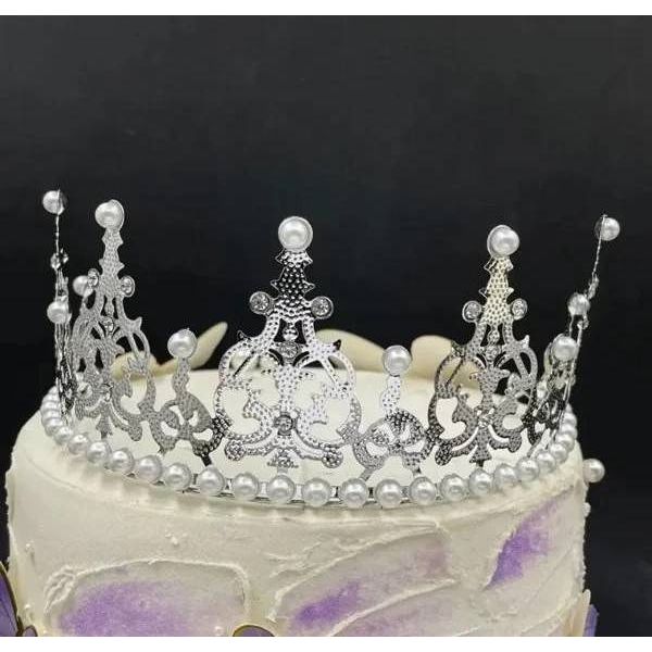 Nejedlá dekorace kovová Koruna stříbrná s bílými perlami