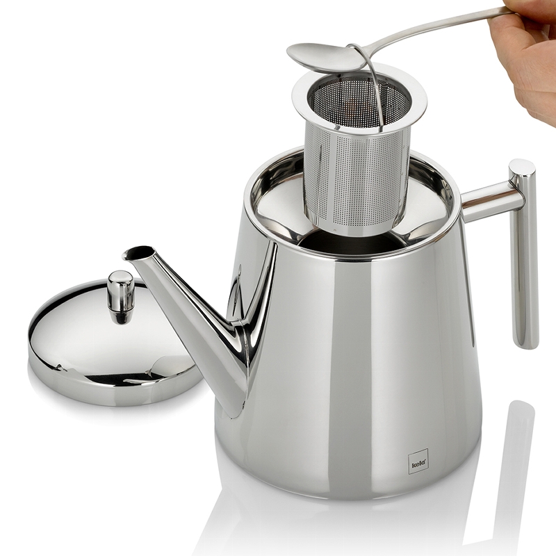 Konvička na čaj vyrobená z vysoce kvalitní nerezové oceli. Uvnitř konvičky je vyjímatelné sítko.