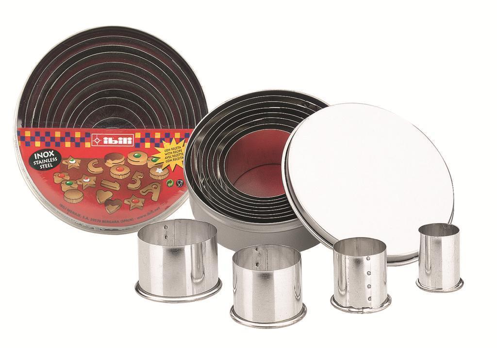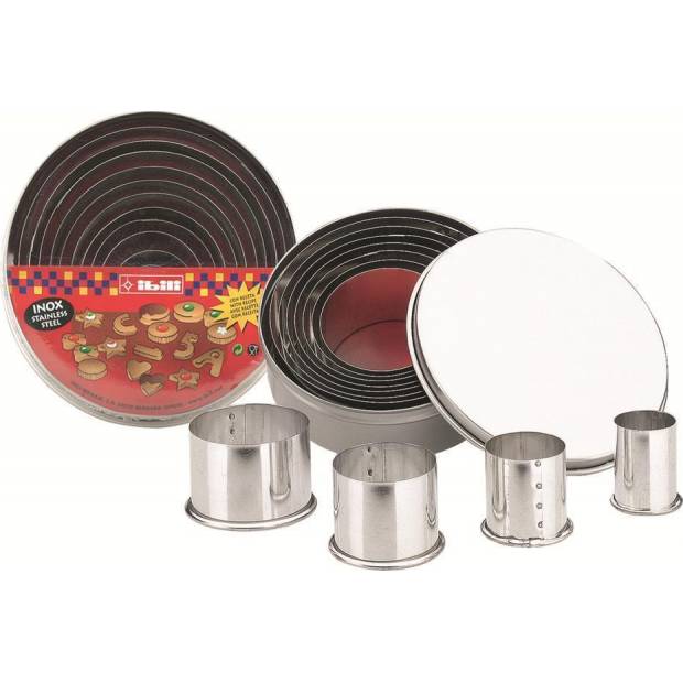 Vykrajovátka z kvalitního nerezu s výškou 4 cm a různým průměrem od 2 do 9 cm s hladkou ostrou spodní hranou. V praktickém obalu je sada 11 kusů.