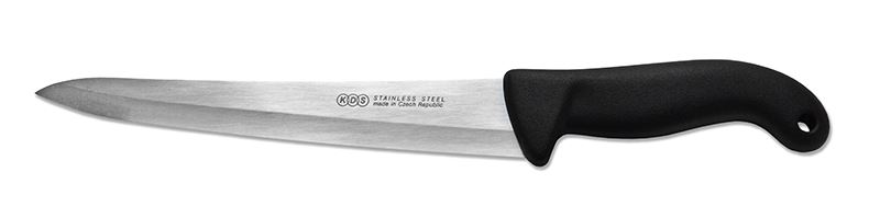 Velmi univerzální kuchyňský nůž, který si hravě poradí s masem i zeleninou. Čepel je dlouhá 20 cm, vyrobená z velmi odolné nerezové oceli. Plastová rukojeť usnadní manipulaci s nožem. Je možné jej mýt v myčce nádobí.