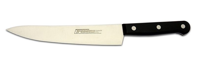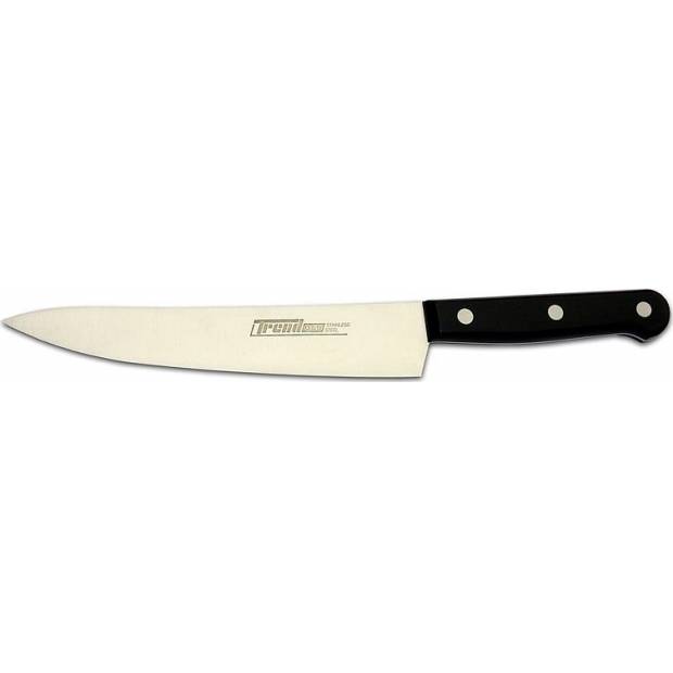 Kvalitní nůž na plátkování masa a zeleniny na menší kousky. Nože ze série Trend Royal jsou vyrobeny ze špičkové francouzské oceli, která obsahuje příměs molybdenu a vanadu. Rukojeť je ergonomicky tvarovaná, vyrobená z vysoce kvalitního plastu. Je možné je dávat do myčky nádobí.