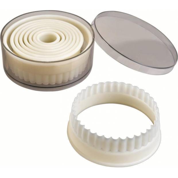 Vykrajovátka mohou mít několik podob. Zvolte si kulatý a vlnitý tvar různých průměrů od 2cm do 10cm. Balení, které obsahuje 9ks nylonových vykrajovátek, která odolávají vysokým teplotám až do 200C°. Díky použitému materiálu lze nylonová vykrajovátka umístit do myčky na nádobí.