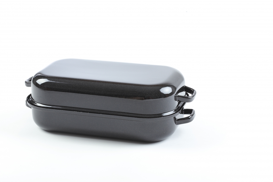 Klasický pekáč patří mezi tradiční druhy nádobí, které doma mají své stálé místo. Pekáče do trouby jsou vyrobeny z kvalitního plechu o síle 0,8 mm a opatřeny vrstvou smaltu, který je zdravotně nezávadný a umožní rovnoměrné pečení nejrůznějších slaných i sladkých pokrmů. Oboustranně smaltovaný pekáč je určený je do všech typů sporáků, včetně indukce, stejně tak je vhodný pro mytí v myčce. Dva pekáče do sebe perfektně zapadnou, lze je použít samostatně. Jeho rozměry jsou 32 x 20 cm.
