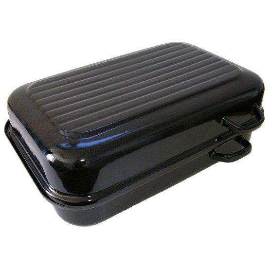 Oboustranně smaltovaný dvoupekáč má speciální rastrované dno, jež usnadňuje přípravu masa. Lze jej použít jak do běžné trouby na plyn či elektřinu, tak jej můžete postavit na indukční plotýnku. Vyroben je ze zdravotně nezávadného materiálu, síla plechu je 1,2 mm. Smaltovaný pekáč má skutečně dlouhou životnost, velmi snadno se udržuje v čistotě. Pro snadnější manipulaci jsou uši umístěny na boční straně pekáče. Tajemstvím vaší kuchyně a dobře připravených pokrmů může být právě tento pekáč. (vnitřní): 38 x 24 x 8 cm. Rozměr s uchy - kompet (vnější): 41 x 31,5 x 15 cm