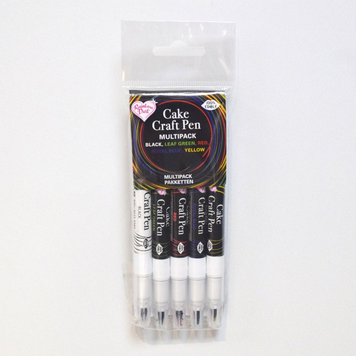 Balení obsahuje 5x oboustranný jedlý fix, který lze použít na dvou stranách, jedna strana má jemný hrot od 0,5 mm a druhá strana má silný hrot od 2,5 mm. Pero je vhodné zejména pro modelování, jako jsou oči a jemné liky na tvářích nebo žilky na okvětních lístcích a květinách. Pero je k dispozici ve 23 různých barvách. Speciální potravinářský inkoust rychle schne a je lepší pro jemnou práci než barva a štětec. Pero funguje nejlépe na tvrdém povrchu, proto nechte marcipán, fondán nebo gumovou pastu před použitím fixu trochu zaschnout. Oboustranné pero uchovávejte těsně uzavřené, aby nedošlo k dehydrataci. Pokud je pero vysušené, použijte na hrot trochu vody. Není vhodné k barvení velkých ploch. Na velké povrchy můžete použít potravinářskou barvu nebo barvu z barevného prachu a omlazovacího lihu. Inkoust v peru je na vodní bázi a není vhodný k barvení čokolády a cukrovinek. V balení najdete tyto barvy: Černá, listová zelená, červená, královská modrá a žlutá.