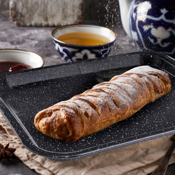 Smaltované plechy využijete na přípravu buchet, koláčů, cukroví a dalších moučníků, ale také na pečení masa, na zapékání brambor, těstovin, zeleniny... Materiál: plech se smaltovou povrchovou úpravou. Rozměry: 42x37x3,5 cm (vnitřní rozměr 38x34x3,5 cm).