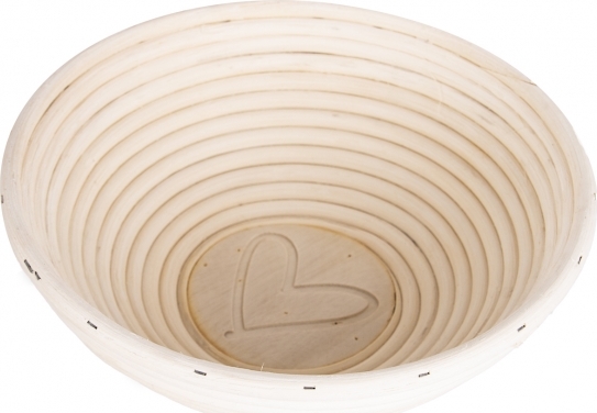 Ošatka na přípravu domácího chleba s motivem SRDCE kulatá Vám pomůže připravit dokonalé čerstvé domácí pečivo. Využijete ji na kynutí těsta, uskladnění chleba, servírování pečiva i jako dekoraci. Tvar a struktura ošatky se otiskne do těsta a vytvoří tak klasický vzhled bochníku. Materiál: přírodní pedig, kanárníkové dřevo. Ošatky se nemáčí, pouze se nechají oschnout, případně je můžete vykartáčovat. Rozměry: pr. 21 cm, v. 7,5 cm, (bochník 1,2 kg, potřeba 600 g mouky).
