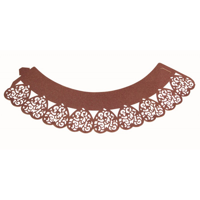 Ozdobný límec na košíčky se srdíčky hnědý, 12 ks.