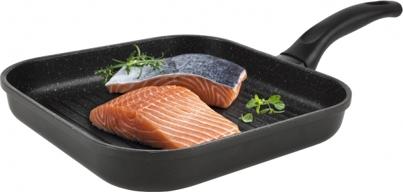 Odlévaná masivní hranatá pánev s velmi kvalitním nepřilnavým povrchem PFLUON GRANIT. Můžete na ni smažit, dusit, opékat s minimální potřebou tuku. Skvěle se hodí na přípravu ryb. Materiál: hliník s vynikajícím nepřilnavým povrchem PFLUON GRANIT a s profilovaným dnem, bakelit (držadlo). Možnost zavěšení. Rozměry: 26x26x4,5 cm. Vhodná na všechny typy spotřebičů včetně indukce. Vhodná do myčky na nádobí – vlivem agresivních čisticích prostředků může dojít k nepatrné oxidaci dna – tento jev nemá vliv na proces vaření, není zdravotně závadný a nemůže být předmětem reklamace. Doporučujeme použití kuchyňské chňapky.