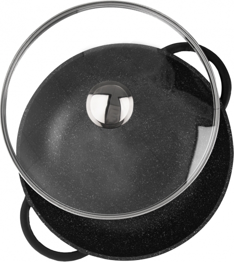 Masivní hluboká pánev se dvěma uchy WOK s poklicí s velmi kvalitním nepřilnavým povrchem PFLUON GRANIT. Můžete na ni smažit, dusit, opékat s minimální potřebou tuku. Materiál: hliník s vynikajícím nepřilnavým povrchem PFLUON GRANIT a s profilovaným dnem, poklice – sklo, nerez. Poklice s otvorem pro únik páry. Rozměry: pr. 32 cm, š. s uchy 41,5 cm, v. 9,5/15 cm. Vhodná na všechny typy spotřebičů včetně indukce. Lze mýt v myčce na nádobí. Doporučujeme použití kuchyňské chňapky. U plynových sporáků volte správnou velikost plamene, u elektrických, sklokeramických a indukčních vařičů je nutné zvolit odpovídající velikost ploténky. Připravovaný pokrm lze na sporáku připravit a pak jej vložit do trouby. Při použití v troubě poklice max. do 200 °C. Lze mýt v myčce na nádobí.