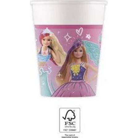 Papírové kelímky s motivem Barbie. Objem 200 ml, v balení 8 ks.