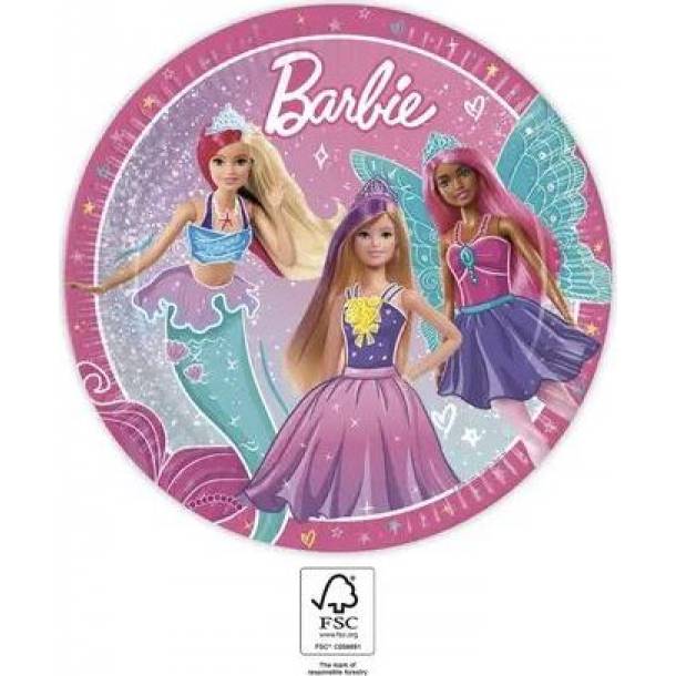 Perfektní papírové talíře na oslavu narozenin. Každé balení obsahuje 8 Barbie zdobených papírových talířů na oslavu. Licencované talíře s motivem Barbie se hodí na nejrůznější akce pro děti. Jsou určeny k jednorázovému použití, lze je plně recyklovat.