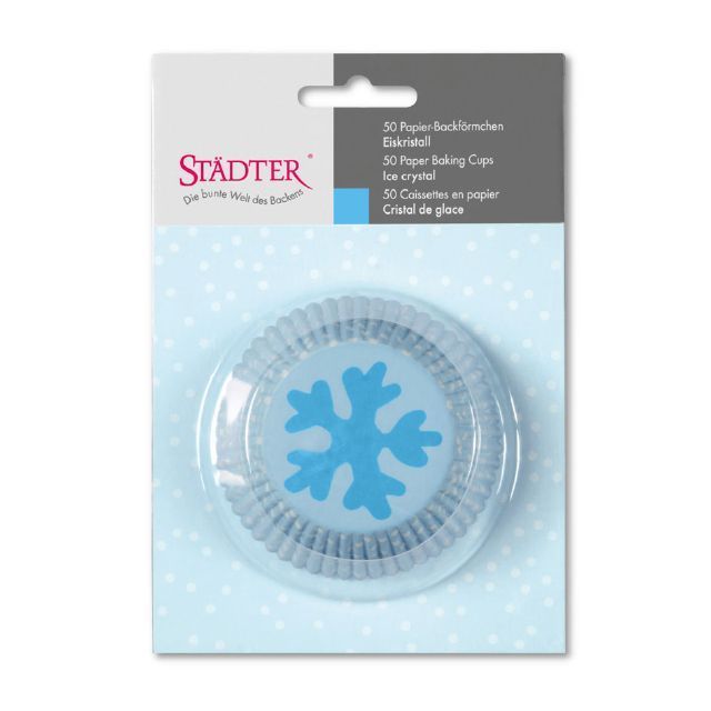 "Papírové pečicí formičky - košíčky, vzor sněhová vločka. Papírové formičky jsou vhodné na pečení muffinů a cupcakes. Košíčky vždy naplňte těstem jen do 2/3, při pečení těsto zvětší svůj objem.Materiál: papírVýška 3,2 cmPrůměr