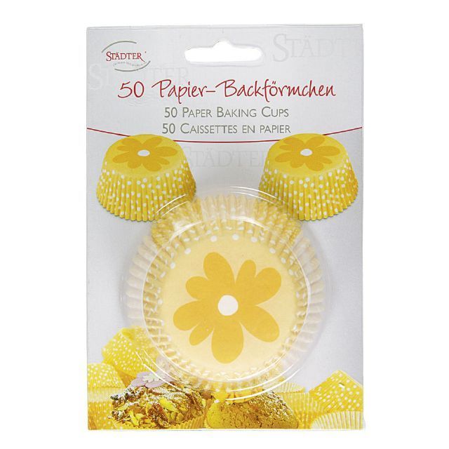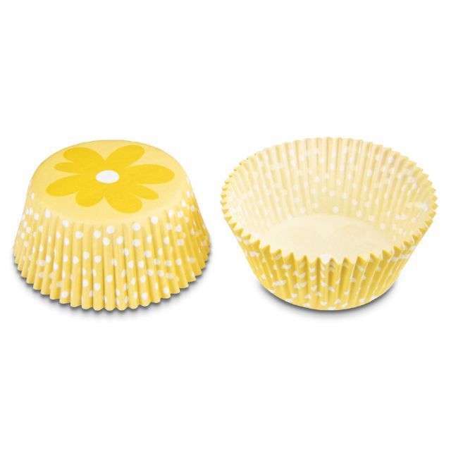"Papírové pečicí formičky - košíčky, vzor žlutá květina. Papírové formičky jsou vhodné na pečení muffinů a cupcakes. Košíčky vždy naplňte těstem jen do 2/3, při pečení těsto zvětší svůj objem.Materiál: papírVýška 3,2 cmPrůměr