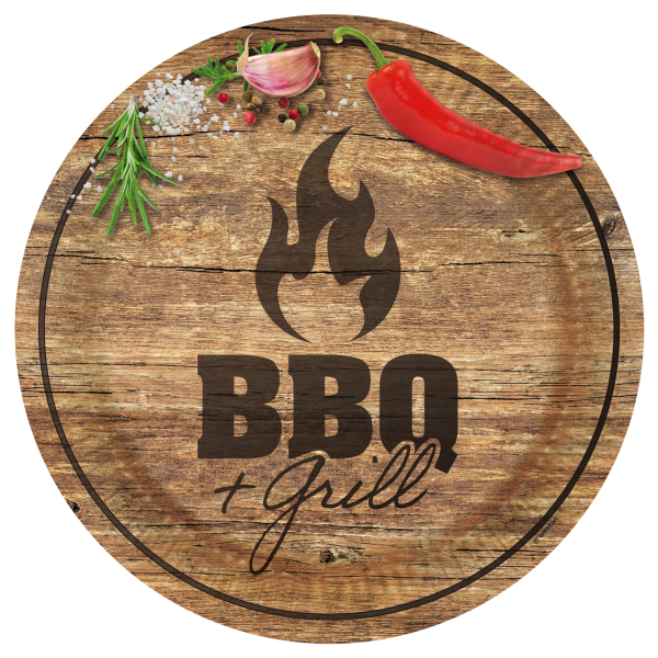 Papírový talíř na grilování s motivem BBQ. V balení 8 ks. Rozměry 23 cm.