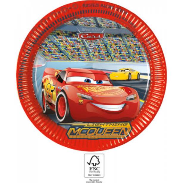 Papírové talíře na party Cars. V balení 8 ks. Průměr 23 cm.