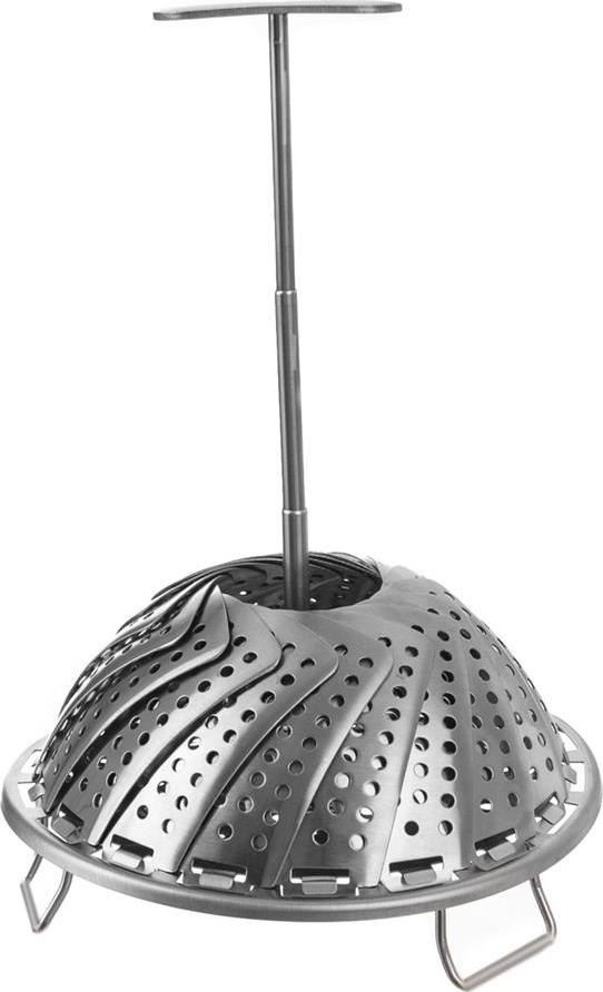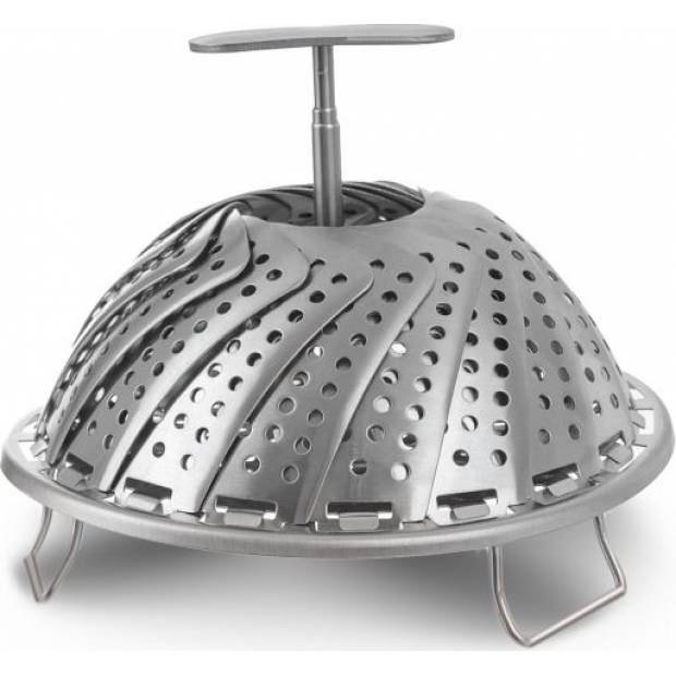 Pařáček skládací je vhodný k napařování knedlíků i vaření zeleniny a jiných pokrmů v páře - zachováte minerály a vitamíny. Materiál: nerez. Skládací nožky i středová tyčka. Rozměry: pr. 14/23 cm.